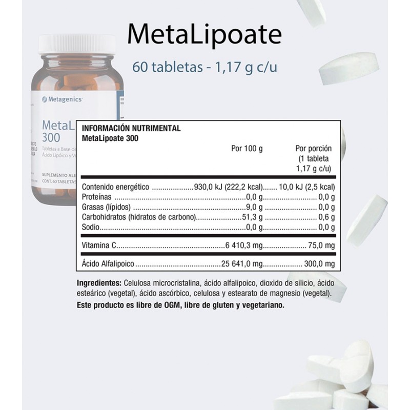 MetaLipoate 300: Tabletas a base de Ácido Lipoico y Vitamina C.