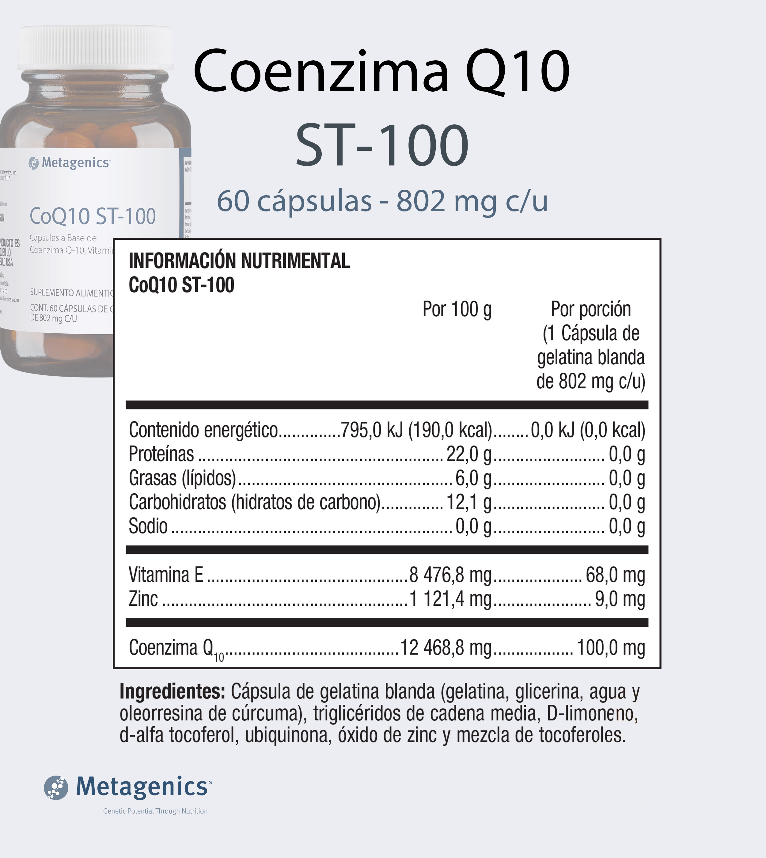 CoQ10 ST-100: Cápsulas a base de Coenzima Q10, Vitamina E y Zinc.