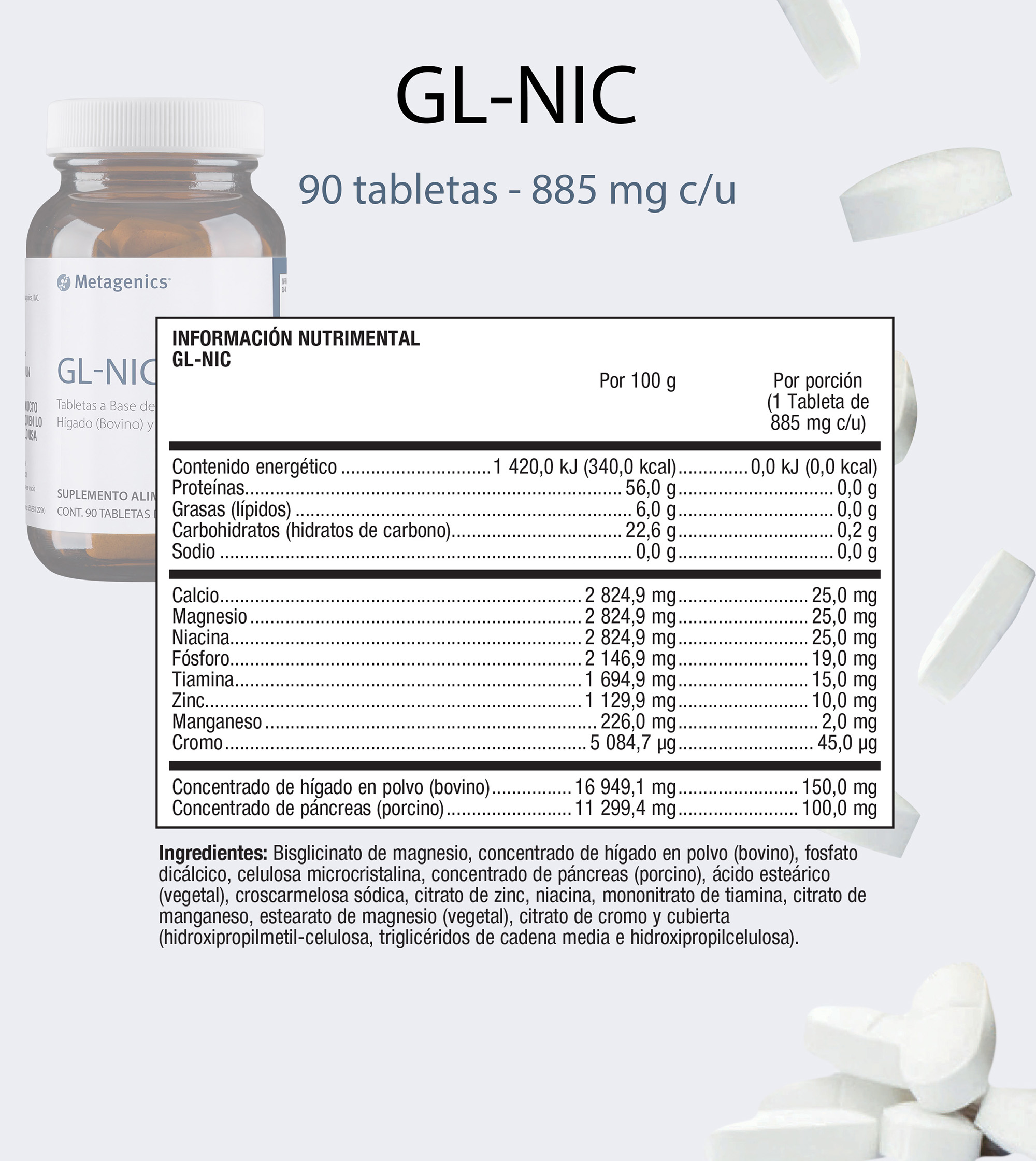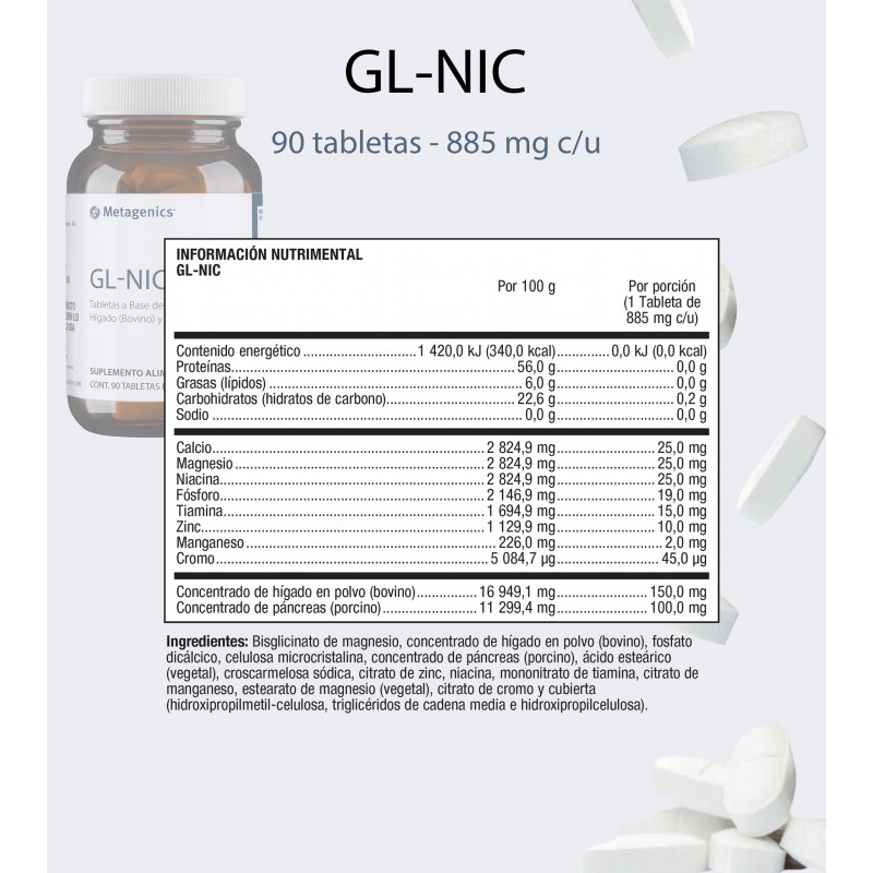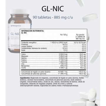 GL-NIC: Tabletas a base de Concentrado de Hígado (Bovino) y Magnesio.